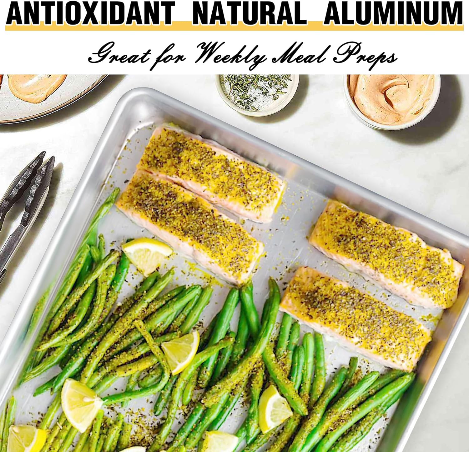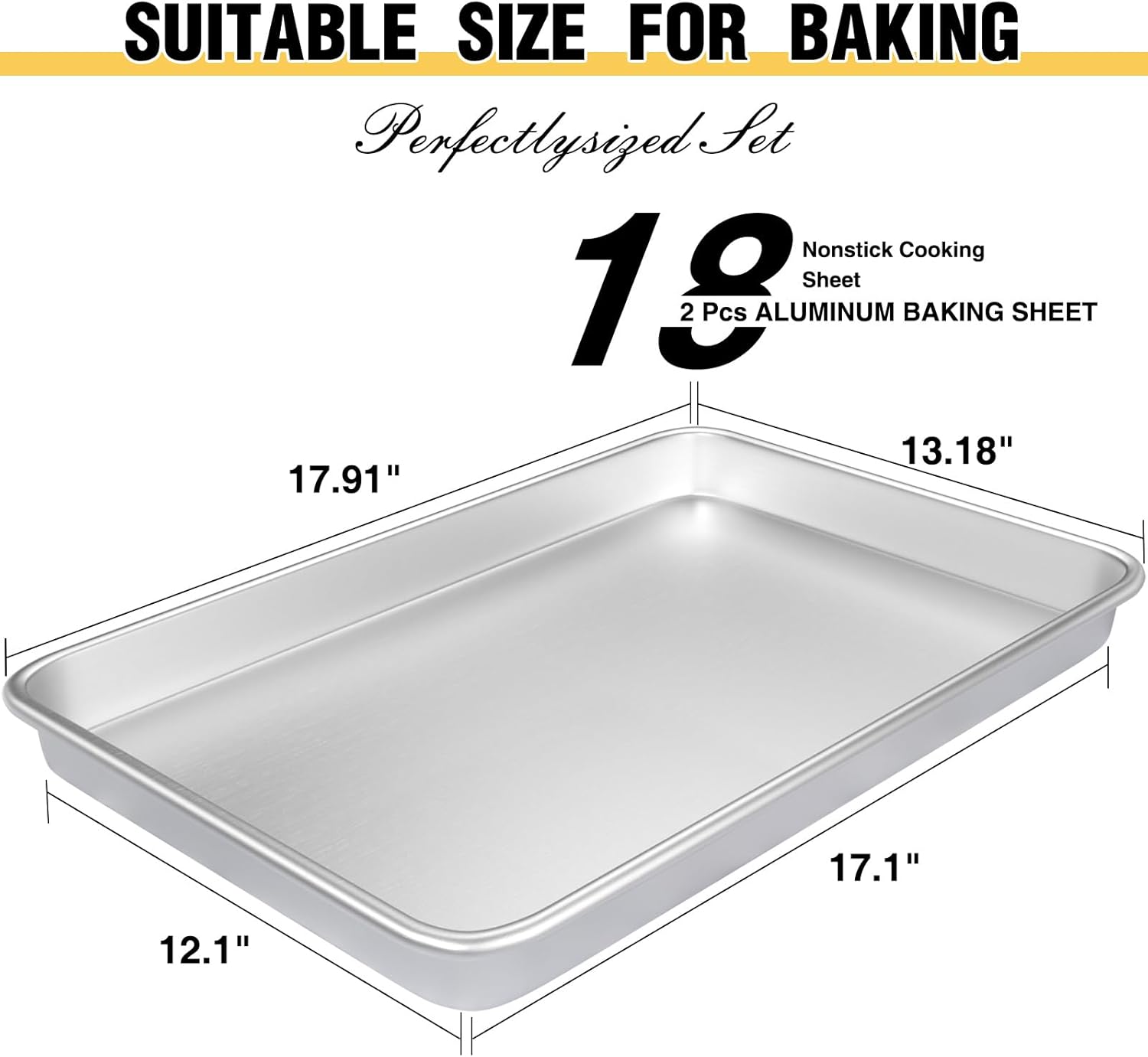 Introducing the Commercial Quality Baking Sheet Pan Set by Umite Chef. Made from natural aluminum, these cookie sheet pans are designed to deliver exceptional baking results every time. The warp-resistant construction ensures even heat distribution, allowing for consistent and perfectly baked cookies, pastries, and more.